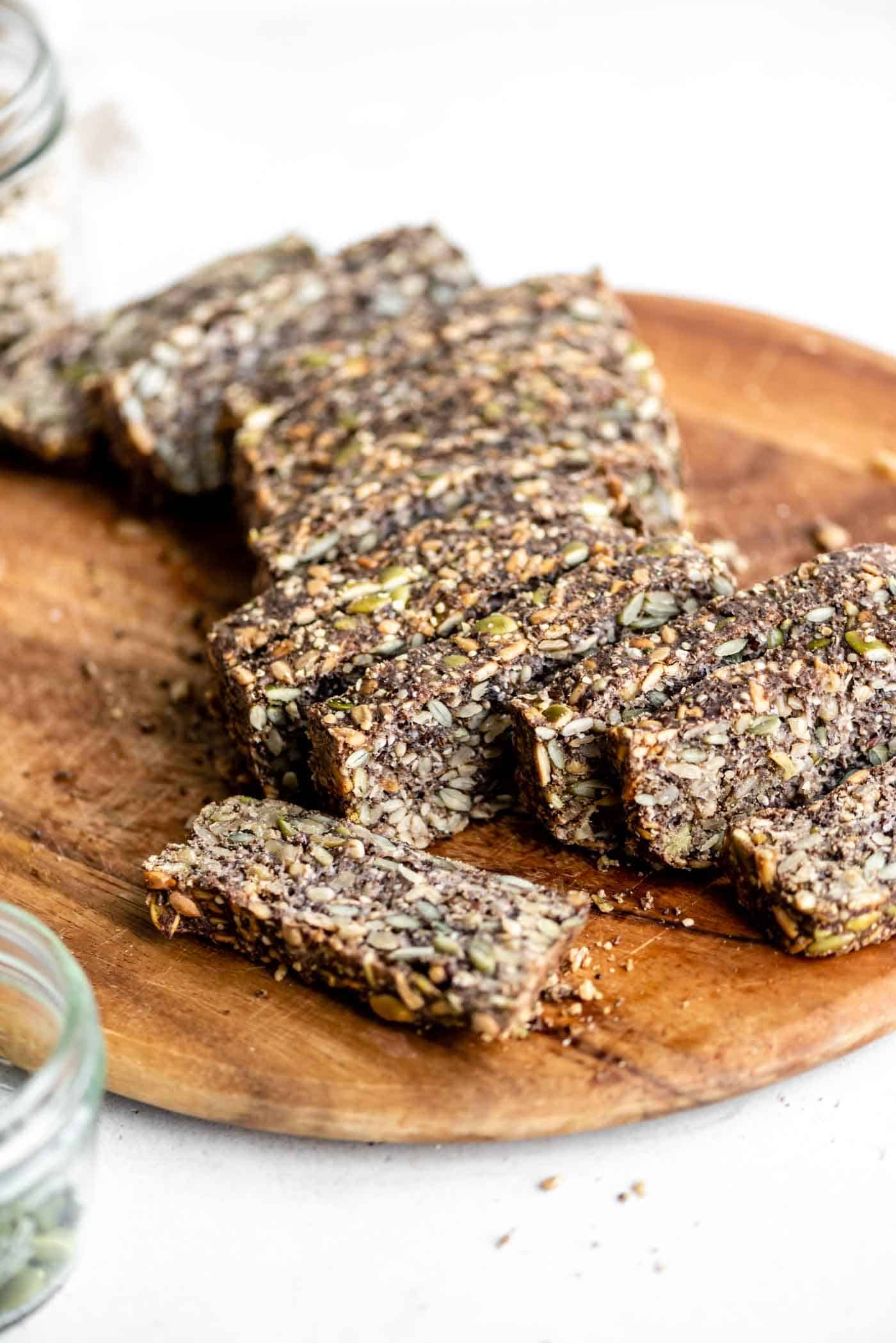 Looking for a high-protein, gluten-free recipe for vegan bread? This recipe from Running on Real Food is made with pumpkin seeds, chia seeds, sunflower seeds, ground flax, and more, making it super rich in vitamins, texture, and flavor!