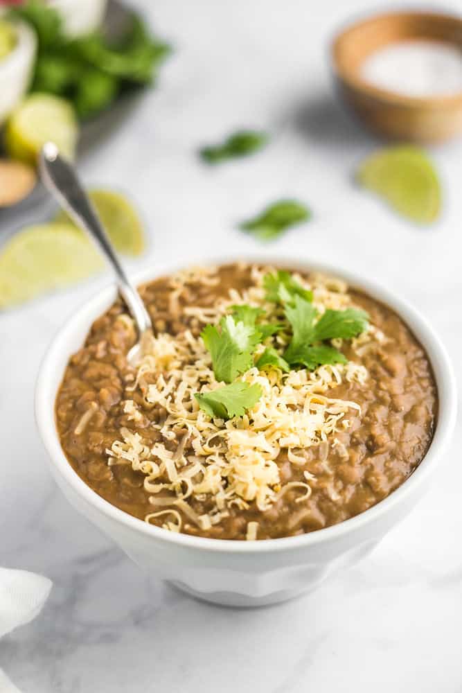 Although you may think that these Instant Pot refried beans will be a tad tame, you’ll be delightfully surprised by their rich flavor profile. Especially being oil-free! Here are some delicious ways to ramp up your refried beans even more: